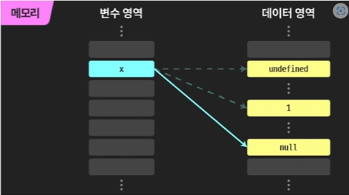 - 초기화(let x;)가 없는 변수 선언은 변수를 undefined로 암시적으로 초기화한다.