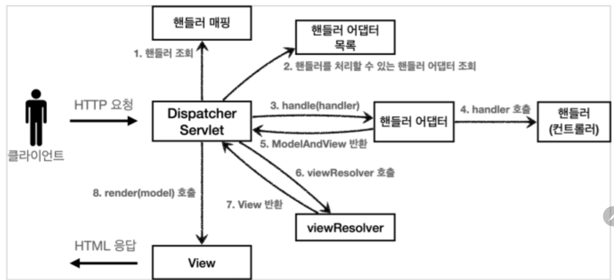 스프링 MVC도 프론트 컨트롤러 패턴으로 구현되어 있다. 프론트 컨트롤러가 DispatcherServlet. 얘가 스프링 MVC의 핵심이다.