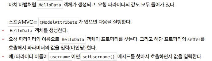 보통은 파라미터를 받으면 필요한 객체를 생성하고 그 객체의 프로퍼티에 파라미터를 셋팅한다. @ModelAttribute는 이 작업을 자동으로 해준다.
